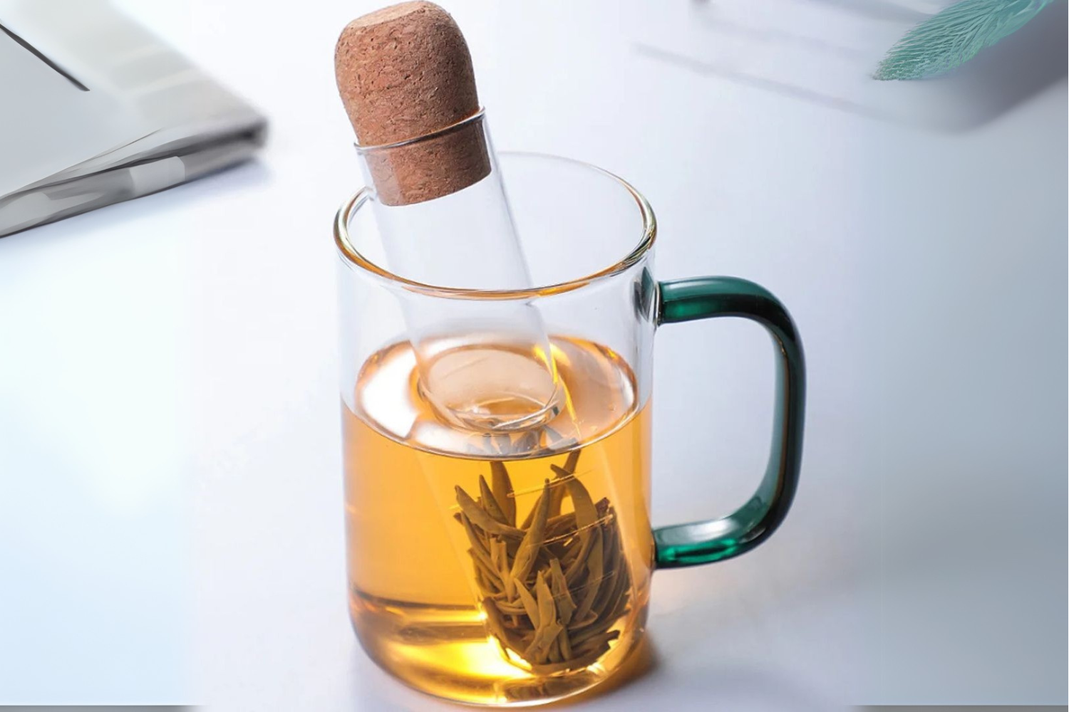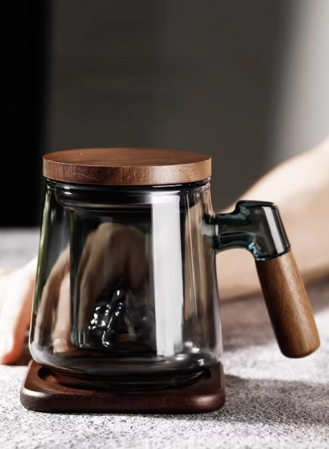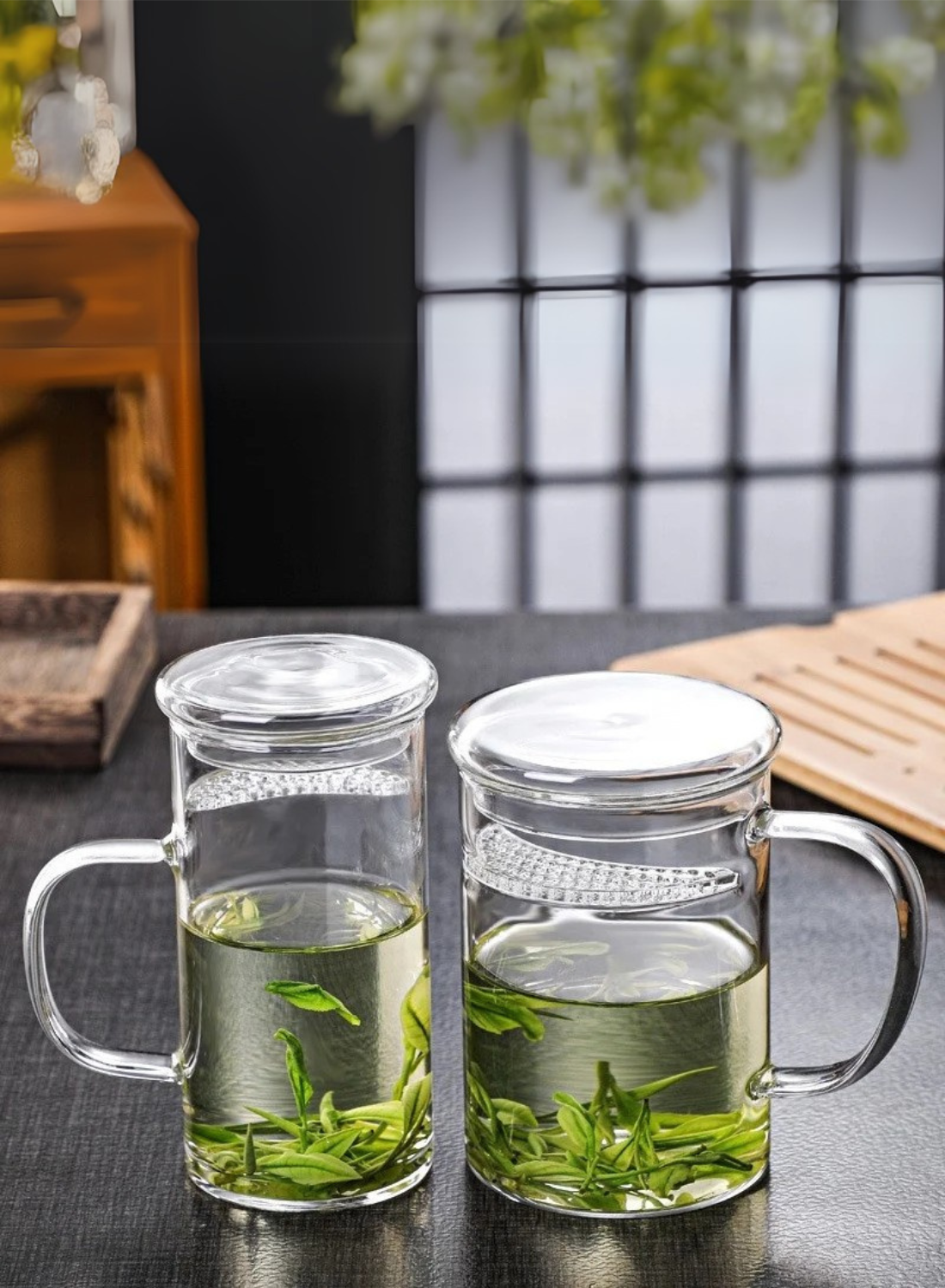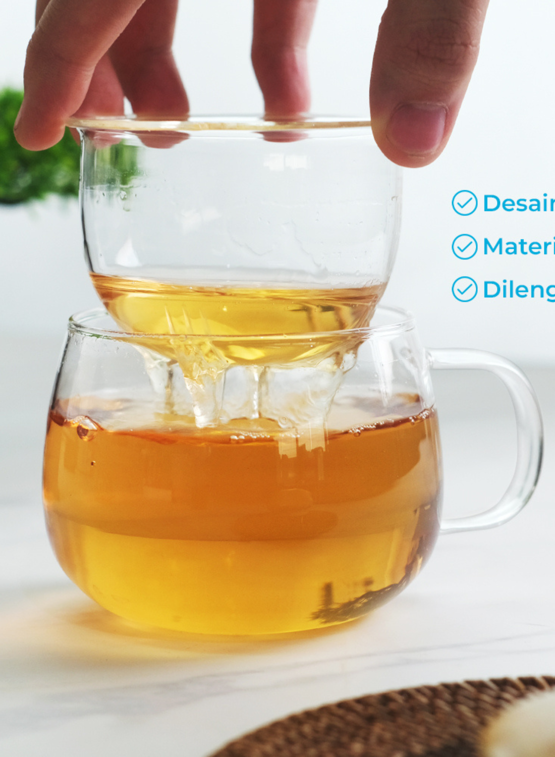 Cangkir Teh Saringan Kaca Tahan Panas Api Infuser Mug with Lid 300ml - P34 - Transparent