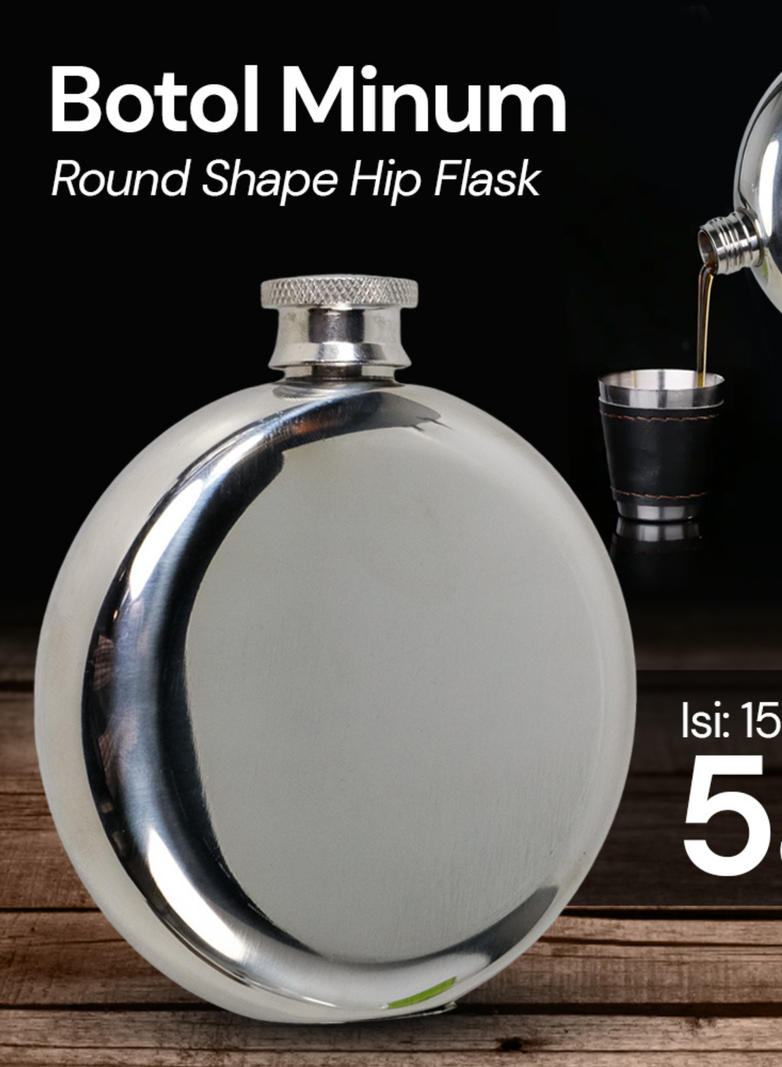 Botol Minum Wine Bir Hip Flask Round Shape Stainless Steel 201 5oz - B-5